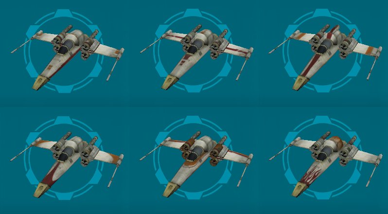 While the Z-95 has a primary and secondary color, the default colors match for primary and secondary. Thus, it looks like the detailing is only in one color. The majority of the hull cannot be painted, and appears as bare metal. The yellow colored portions of the hull, such as on the nose, are also not part of the paint job and thus can't be changed.