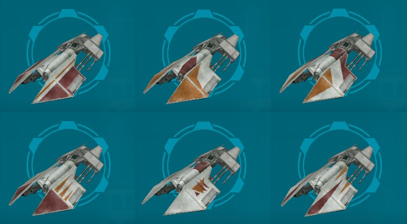 As with all of the Black Sun fighters, there is currently a bug which makes the patterns on the wings not visible. However, the default colors of red and orange makes what markings can be seen easily distinguishable. The bare hull cannot be painted, but otherwise the primary (red) and secondary (orange) colors may be changed to any combination. The perspective of these pictures very much hides the sheer size of this ship, the tail is MUCH larger than it appears.
